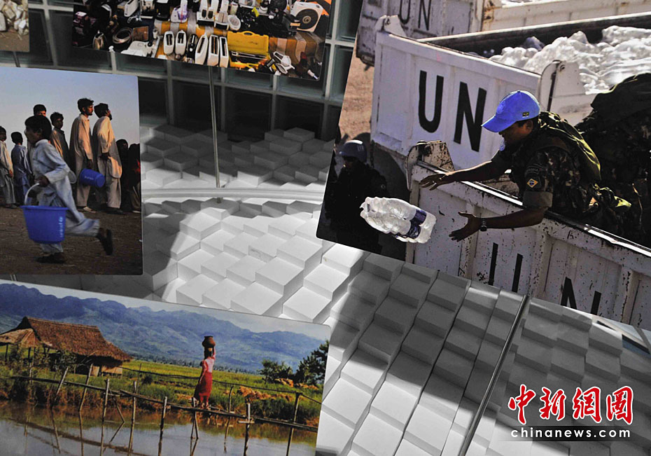 一所藍色的簡樸平房,在5月開園的上海世博會大道邊上,極不顯眼。但是,聯合國聯合館的鮮明會標,特別吸引人。這個展館集中了世界衛生組織、世界銀行和聯合國的兒童基金會、糧農組織、教科文組織等22個機構。圖片來源:中國新聞網 賈國榮 攝