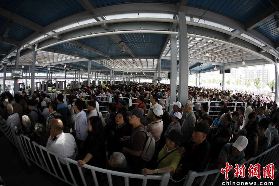 圖為排隊進(jìn)入園區(qū)參觀的游客。中新社記者 盛佳鵬 攝