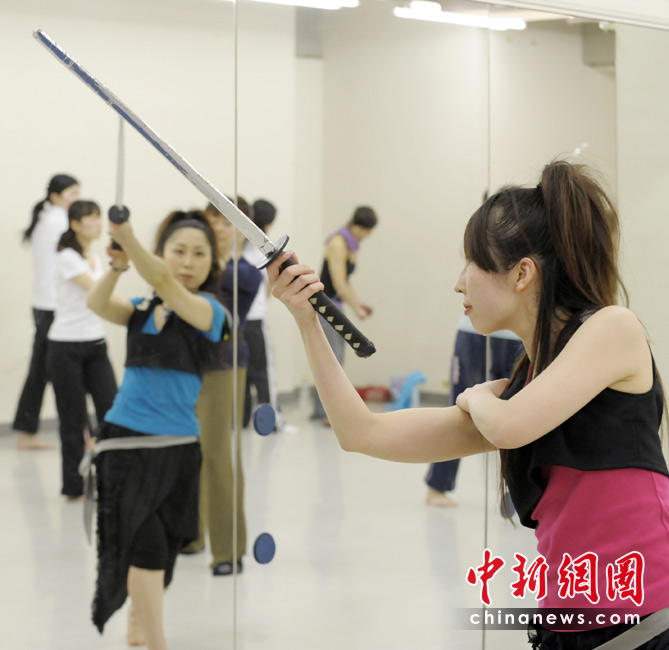 近日,在日本東京,眾多白領女性學起了日本傳統的武士刀,用來減壓。