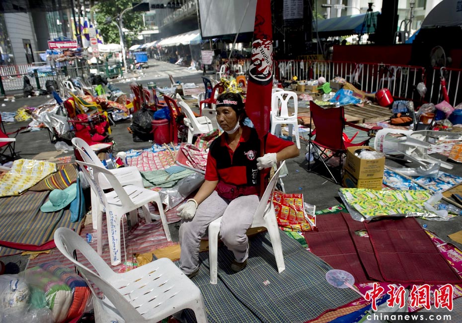 泰國紅衫軍領導人乍都蓬19日下午1時決定,向曼谷警方投降。同時向警方投降的還包括納塔兀、素蓬、翁醫師等紅衫軍核心領導人。紅衫軍領導人納塔兀責其支持者宣布,結束紅衫軍已持續了兩個多月的集會示威行動。圖片來源:中國新聞網