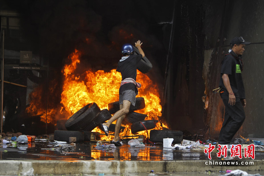 泰國軍方19日清場,希望將陷入內(nèi)戰(zhàn)邊緣的曼谷拯救出來,雖然紅衫軍節(jié)節(jié)敗退,但有激進(jìn)分子未肯罷休,四處放火,電視臺、股票交易所、電力公司、幾間銀行、商場戲院都遭殃,商場和便利店亦成為搶掠目標(biāo)。據(jù)報曼谷有27處地方起火,泰國最大的商場Central World、Siam Square和Siam Paragon三大購物中心被縱火,其中Central World燒通頂,據(jù)報快將倒塌。