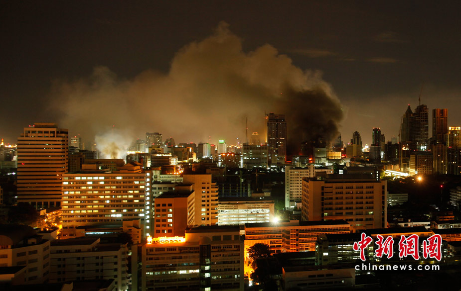 泰國軍方19日清場,希望將陷入內戰邊緣的曼谷拯救出來,雖然紅衫軍節節敗退,但有激進分子未肯罷休,四處放火,電視臺、股票交易所、電力公司、幾間銀行、商場戲院都遭殃,商場和便利店亦成為搶掠目標。據報曼谷有27處地方起火,泰國最大的商場Central World、Siam Square和Siam Paragon三大購物中心被縱火,其中Central World燒通頂,據報快將倒塌。