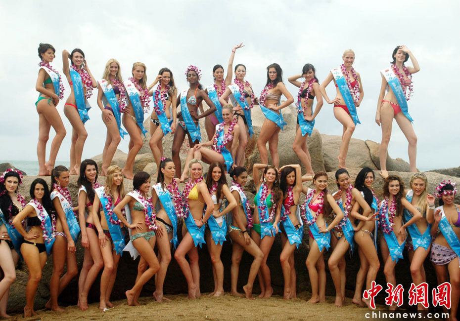 5月21日,海南三亞參加第35屆國際比基尼小姐全球總決賽的64位各國佳麗開始了她們在三亞為期9天的時尚美麗之旅。當日,佳麗們前往著名的天涯海角、大小洞天等景區,拍攝外景,體驗美麗的三亞熱帶風光,展現美麗風采。中新社記者 尹海明 攝