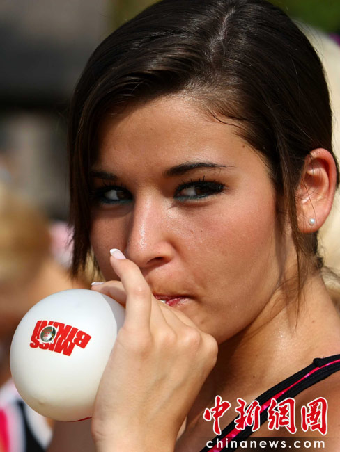 5月22日,一場沙灘趣味運動會在三亞海邊舉行,全球64位比基尼佳麗悉數登場,展現自己的運動天賦。中新社發 富田 攝