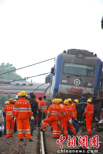 中新網東鄉5月23日電(艾永全 何柳斌 劉占昆)23日下午14時,距離滬昆鐵路客運列車脫線事發已經12小時,武警、消防、醫護、交警、特警仍在事故現場緊急救援。 劉占昆 攝