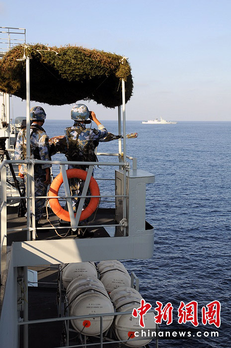 2009年3月,中國海軍護(hù)航編隊(duì)與151特混編隊(duì)指揮艦及歐盟海軍465特混編隊(duì)指揮艦進(jìn)行指揮員登艦互訪,相互參觀軍艦,交流護(hù)航經(jīng)驗(yàn)。