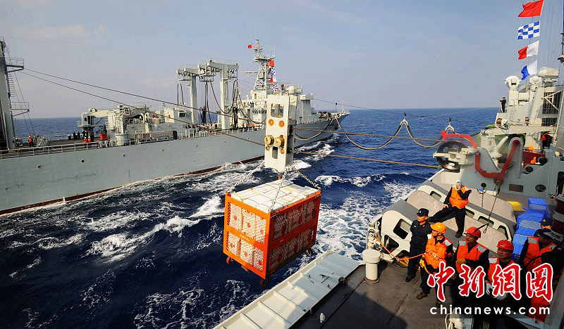 3月12日,在阿拉伯海上進(jìn)行第二次補(bǔ)給。江山 攝