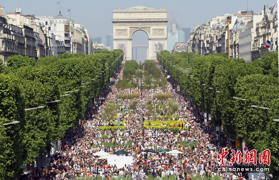 5月24日,法國總統薩科齊和妻子布呂尼參觀在法國巴黎舉行的“自然首都”展。該項展覽是由街頭藝術家加德·魏爾聯手法國“青年農民協會”和林業協會共同發起的的,將百余種農作物、樹木和動物“齊聚”法國首都巴黎的香榭麗舍大街,令這條“香街”變身“綠色的自然世界”。圖片來源:中國新聞網