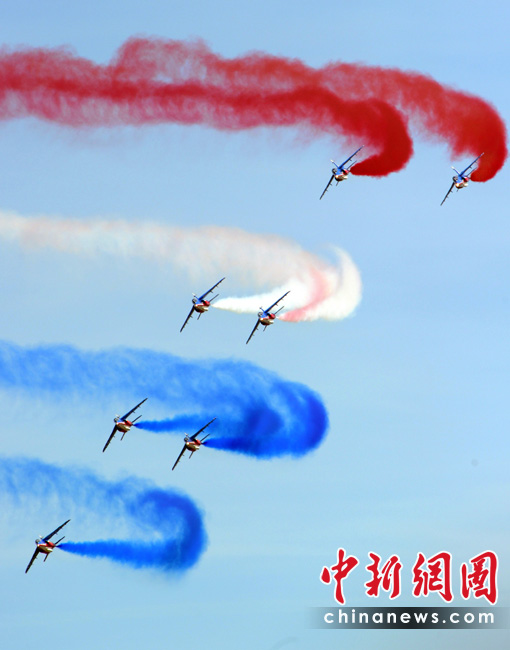 5月25日,法國巡邏兵特技飛行表演隊在普羅旺斯地區進行驚險的飛行表演。