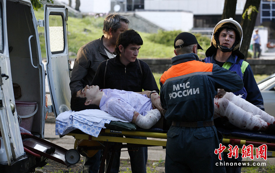 當(dāng)?shù)貢r(shí)間5月26日18時(shí)45分,一不明爆炸物在與斯塔夫羅波爾市體育文化宮毗鄰的一個(gè)建筑附近發(fā)生爆炸,造成至少5人死亡,46人受傷。警方初步判斷,爆炸造成的死傷人員可能是來參加車臣國(guó)家歌舞團(tuán)舉行的音樂會(huì)的觀眾。目前爆炸現(xiàn)場(chǎng)已被封鎖,俄聯(lián)邦總檢察院北高加索和南部聯(lián)邦區(qū)偵查機(jī)關(guān)正會(huì)同當(dāng)?shù)鼐胶吐?lián)邦調(diào)查局進(jìn)行現(xiàn)場(chǎng)調(diào)查。圖片來源:中國(guó)新聞網(wǎng)