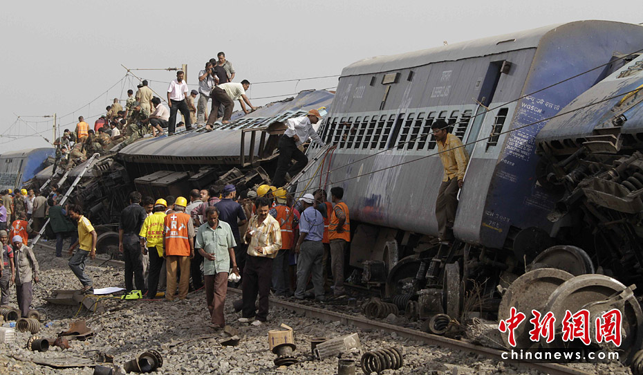當(dāng)?shù)貢r(shí)間5月28日,印度一列特快列車在東部西孟加拉邦的西米德納布爾遭反政府武裝襲擊脫軌,造成百余人死傷。圖片來(lái)源:中國(guó)新聞網(wǎng)