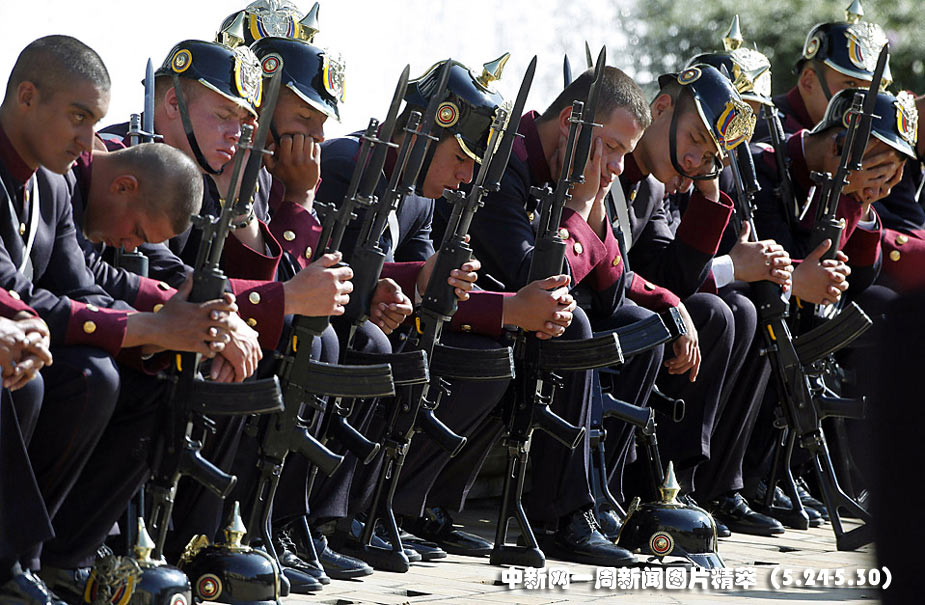 24日(周一),哥倫比亞波哥大,洪都拉斯總統訪問哥倫比亞,士兵們在歡迎儀式前休息。