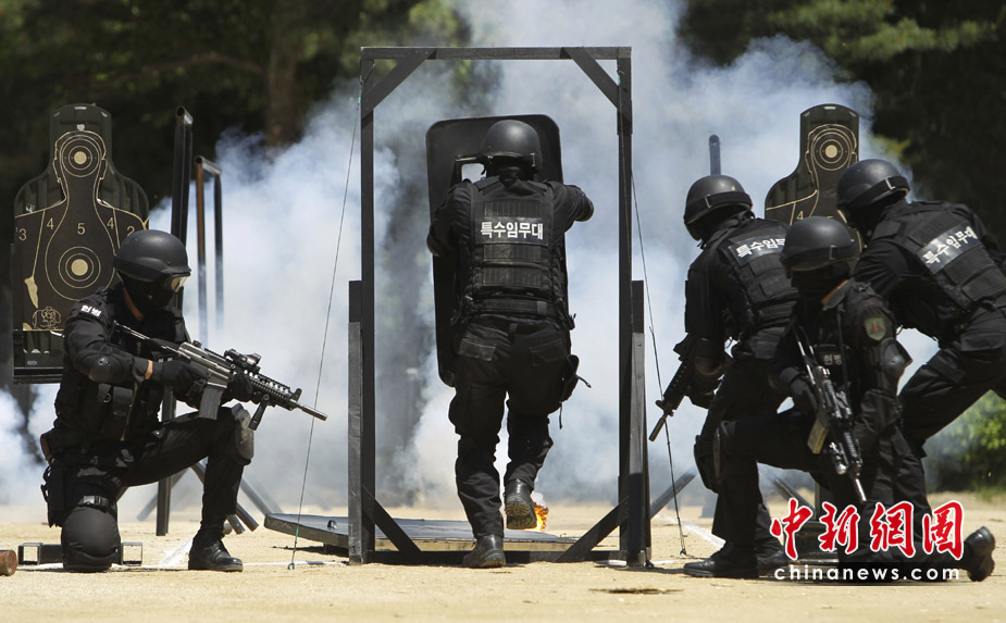 2010年6月1日,在韓國首爾,首爾防衛部隊進行了大型反恐軍事演練。