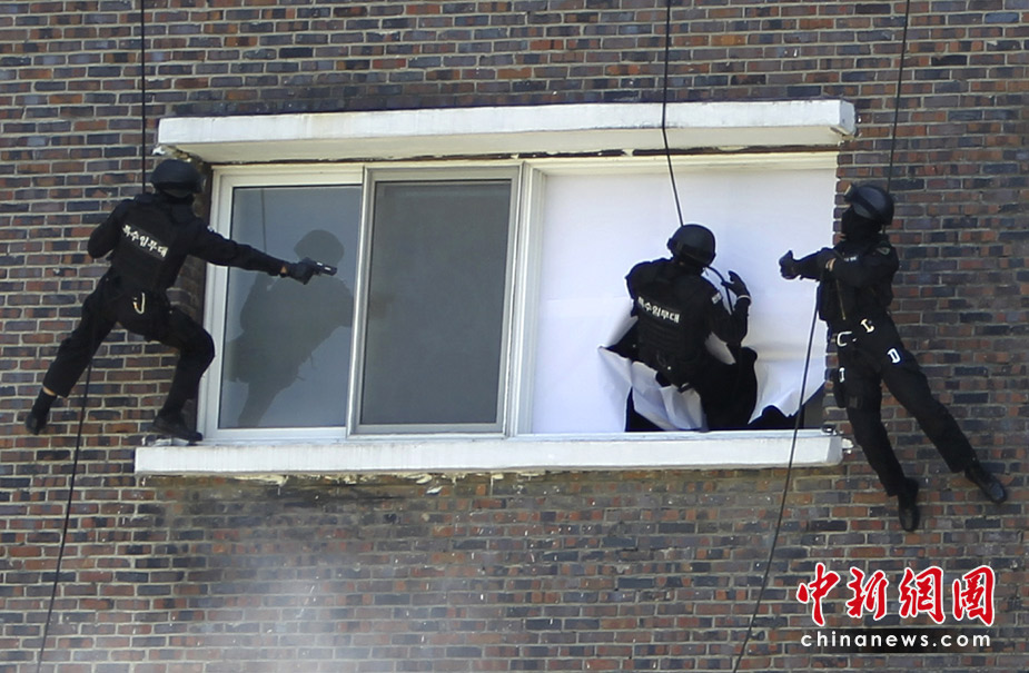 2010年6月1日,在韓國首爾,首爾防衛部隊進行了大型反恐軍事演練。