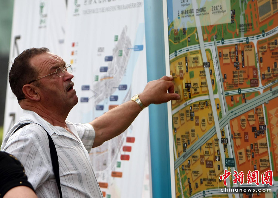 截至6月5日19點30分,上海世博會累計參觀者已超過1000萬人次。據悉,上海世博會的規劃用地為5.28平方公里,約242個國家和國際組織參展分布在浦東和浦西兩大區域。要想在這么大的地方找到自己想去的地方,那么世博地圖就是必須的裝備。圖為上海世博園內游客正在地圖上尋找自己要去的地方。中新社記者 杜洋 攝