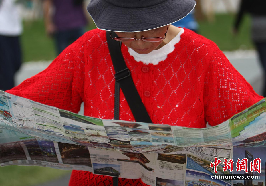 截至6月5日19點30分,上海世博會累計參觀者已超過1000萬人次。據悉,上海世博會的規劃用地為5.28平方公里,約242個國家和國際組織參展分布在浦東和浦西兩大區域。要想在這么大的地方找到自己想去的地方,那么世博地圖就是必須的裝備。圖為上海世博園內游客正在地圖上尋找自己要去的地方。中新社記者 杜洋 攝