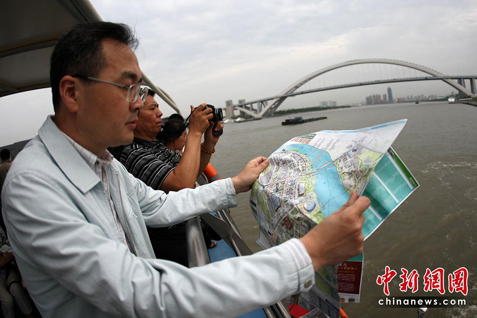 截至6月5日19點30分,上海世博會累計參觀者已超過1000萬人次。據悉,上海世博會的規劃用地為5.28平方公里,約242個國家和國際組織參展分布在浦東和浦西兩大區域。要想在這么大的地方找到自己想去的地方,那么世博地圖就是必須的裝備。圖為上海世博園內游客正在地圖上尋找自己要去的地方。中新社記者 杜洋 攝