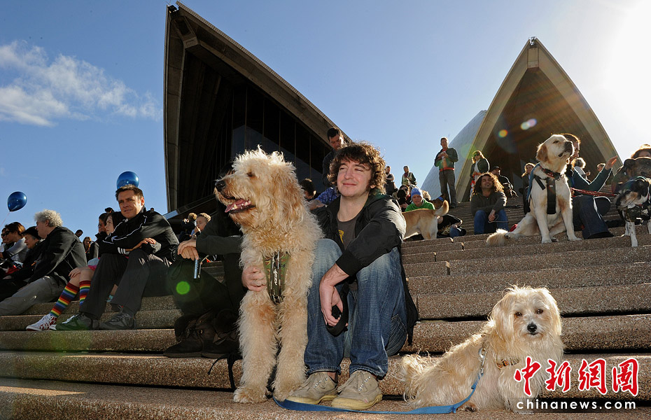 6月5日,澳大利亞悉尼歌劇院外舉辦了全球首場狗能聽懂的音樂會,約有1000人帶著數百只愛犬在劇院前庭和階梯落坐,聆聽“狗的音樂”,整場音樂會全長20分鐘。圖片來源:中國新聞網