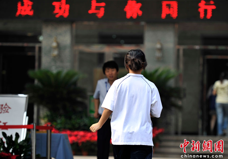2010年全國高考6月7日日拉開大幕,957萬考生走進考場。由于報名人數減少,而招生計劃增加,教育部預計今年全國高考平均錄取率將會增加近7%。圖為首都師范大學第二附屬中學考點。中新網記者 金碩 攝