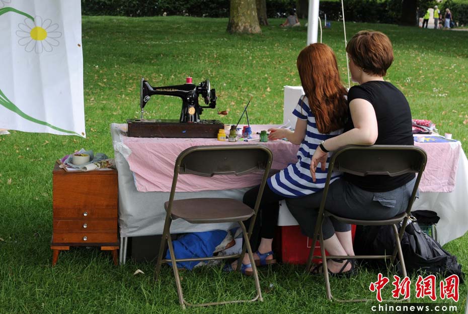 當地時間2010年6月6日,英國倫敦舉行卡姆登綠色市集(Camden Green Fair),這是英國倫敦每年環(huán)保領域的“重頭戲”。本屆市集的主旨是要喚起大眾對環(huán)境問題的關注,選擇更加可持續(xù)發(fā)展的生活方式。據活動主辦方預計,本屆市集將吸引來自英國各地和世界各國的2萬多人參加。圖為一對母女在做手工。桌子上的老式縫紉機讓人有重回舊時光的感覺。Fiona/攝 Fiona 馬小剛/文