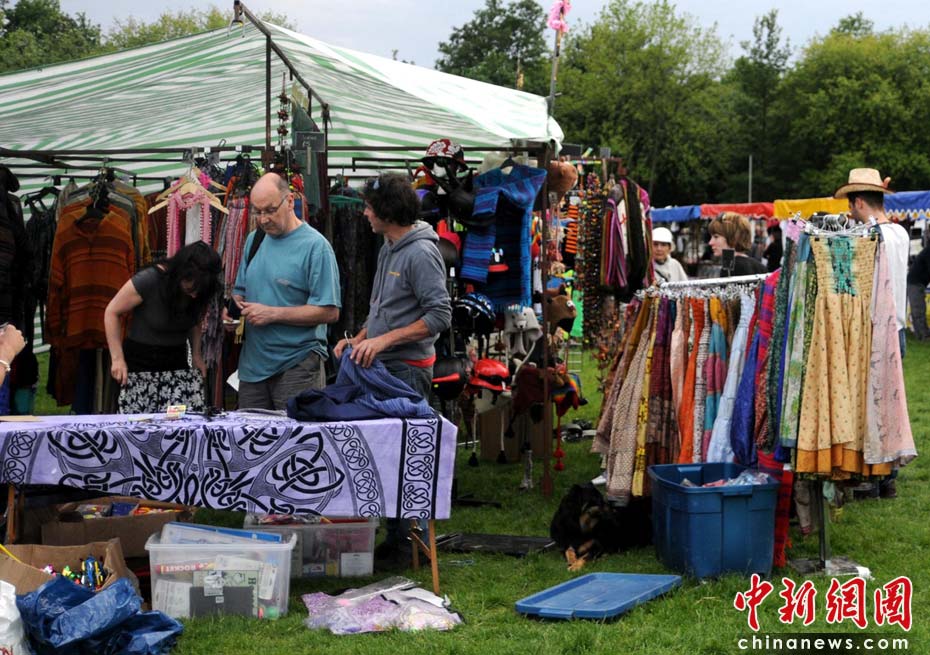 當地時間2010年6月6日,英國倫敦舉行卡姆登綠色市集(Camden Green Fair),這是英國倫敦每年環保領域的“重頭戲”。本屆市集的主旨是要喚起大眾對環境問題的關注,選擇更加可持續發展的生活方式。據活動主辦方預計,本屆市集將吸引來自英國各地和世界各國的2萬多人參加。圖為二手物品創意市集。人們可以在這里交換或購買用二手物品制作的創意作品。Fiona/攝 Fiona 馬小剛/文