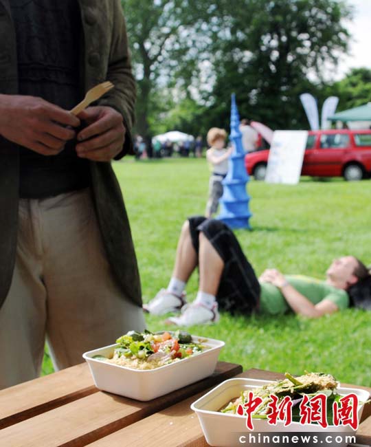 當?shù)貢r間2010年6月6日,英國倫敦舉行卡姆登綠色市集(Camden Green Fair),這是英國倫敦每年環(huán)保領域的“重頭戲”。本屆市集的主旨是要喚起大眾對環(huán)境問題的關注,選擇更加可持續(xù)發(fā)展的生活方式。據(jù)活動主辦方預計,本屆市集將吸引來自英國各地和世界各國的2萬多人參加。圖為各種素食是綠色展會的絕對“主力”。Fiona/攝 Fiona 馬小剛/文
