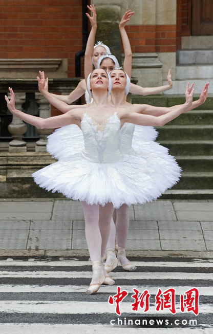 60名芭蕾演員倫敦街頭跳“小天鵝”