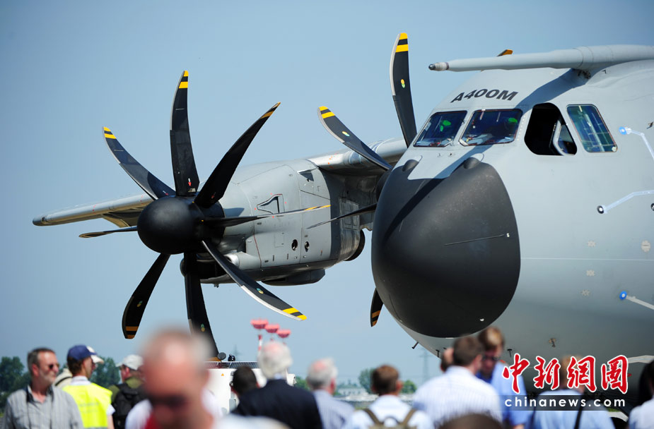 6月8日,德國柏林,一架空中客車A400M軍用運輸機在2010年柏林國際航空展上試飛。
