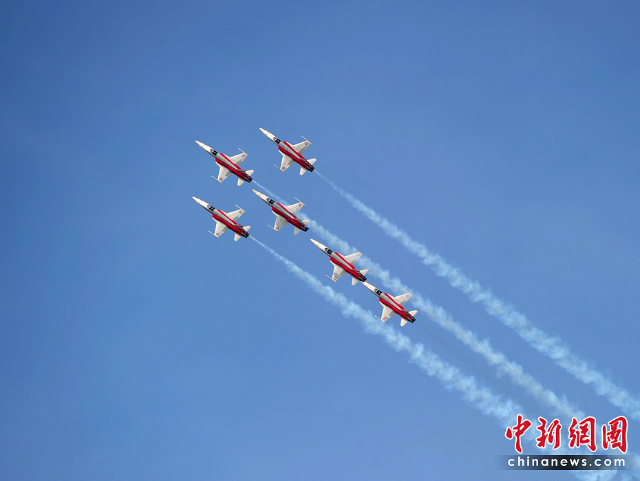 2010年柏林國(guó)際航空展于當(dāng)?shù)貢r(shí)間6月8日在德國(guó)柏林舍內(nèi)費(fèi)爾德機(jī)場(chǎng)開(kāi)幕。9日,瑞士飛行表演隊(duì)在航展上演了精彩的飛行表演。圖片來(lái)源:中國(guó)新聞網(wǎng)
