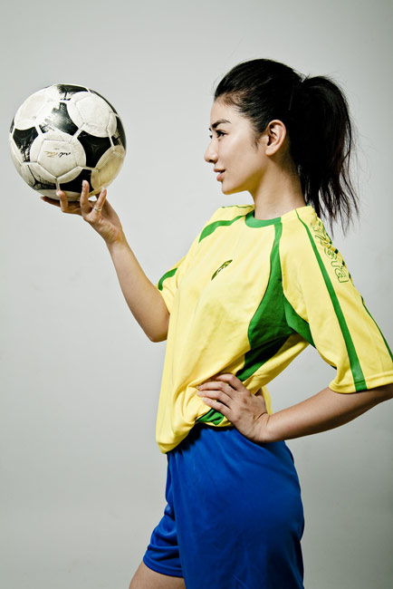 近日,黃奕身穿巴西隊球衣拍攝了一組世界杯足球寫真,為南非世界杯助威喝彩。