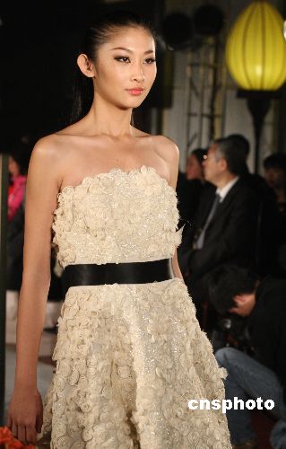 11月12日晚,MOISELLE (慕詩國際集團)慶祝成立10周年之際,特別選址于具有濃郁中國文化氣息的北京中國會(China Club) 舉行07年秋冬系列時裝發布會,MOISELLE素來以時尚設計、優質布料、精致造工及高雅風格見稱,塑造出典雅及女性化的風格,圖為模特在U形天橋上完美演繹 MOISELLE‘07秋冬系列作品。中新社發 錢興強 攝