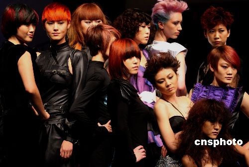 11月10日晚,在北京舉行了一場(chǎng)發(fā)型趨勢(shì)發(fā)布會(huì)上,模特展示了2009最新發(fā)型趨勢(shì)作品。中新社發(fā) 錢興強(qiáng) 攝