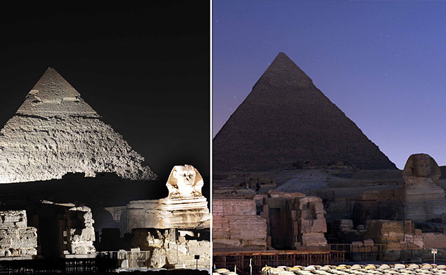 埃及開羅:2009年3月28日,埃及吉薩金字塔群參加“地球1小時”活動。