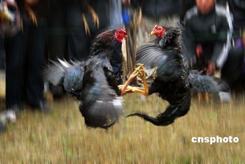 2月8日,大年初二,安徽淮北市童亭礦工會舉辦了一場斗雞比賽。10多對體型高大,魁梧強健,性情兇猛的斗雞,面對對手個個針鋒相對,動作敏捷,嘴腿并用,重爪烈翅,騰閃擊打。據了解,斗雞是我國古老的玩賞型雞種,有著數千年歷史,斗雞場面激烈緊張,極富刺激性和觀賞性。中新社發 胡珍玲(安徽) 攝