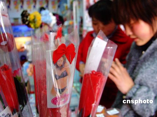 圖:“內衣版”玫瑰花走俏情人節(jié)