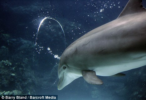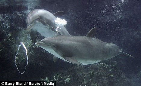 海豚試圖穿過氣泡