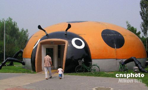 北京公廁在2008年發(fā)展中愈來愈千奇百怪,為目前北京將要開幕的殘奧會增加了色彩。圖為朝陽公園的七星瓢蟲公廁博得廣大兒童的認(rèn)可、喜愛。中新社發(fā) 鄒憲 攝