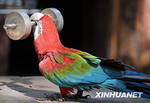 在云南省西雙版納傣族自治州景洪市野象谷景區內,有幾十只聰明的鸚鵡能進行騎自行車、投籃及撿拾垃圾等精彩表演,為游客增添了樂趣。新華社記者藺以光攝