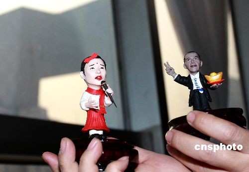 2月8日,北京朝陽(yáng)區(qū)文化館,非物質(zhì)文化遺產(chǎn)項(xiàng)目傳承人“面人彭”彭小平,展示他精心制作的面人新作品——小沈陽(yáng)和奧巴馬。當(dāng)日,為迎接正月十五元宵節(jié),朝陽(yáng)區(qū)文化館舉辦非物質(zhì)文化遺產(chǎn)手工藝作品交流活動(dòng),10余位民間藝術(shù)家進(jìn)行現(xiàn)場(chǎng)技藝展示。中新社發(fā) 鄭雄增 攝