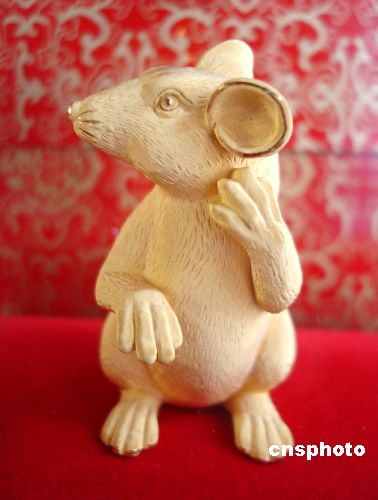 10月23日,蘇州一家金店內一造型可愛的千足金鼠擺件,吸引了顧客的注意。據悉,2008年為農歷鼠年,各種以鼠為題材的飾品在蘇州紛紛上市。中新社發 王建康 攝