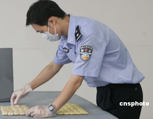 近期,廣州海關連續(xù)查獲多起毒品走私案件。從九月二十五日至十月九日,廣州海關連續(xù)查獲14宗毒品走私案,抓獲十五名涉案嫌疑人,僅人體藏匿海洛因走私入境案就達九宗。其中一人毒品滯留體內(nèi)十九天,另一人體內(nèi)藏毒一千九百多克,時間之長、重量之多,在廣州海關緝私局偵辦的人體藏毒走私案件中均屬前所未有。中新社發(fā) 陳國華 攝