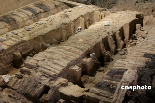 10月24日獲悉,已開放13年的西安兵馬俑二號坑陳列廳將于2007年11月1日起封館,對展廳屋頂漏雨情況進(jìn)行全面處理。秦始皇兵馬俑二號坑總面積約8000平方米,是3個(gè)坑中最為壯觀的軍陣,目前,二號坑中發(fā)現(xiàn)的文物2000件,其中將軍俑、鞍馬俑、跪姿射俑為首次發(fā)現(xiàn)。二號坑陳列廳于1988年動(dòng)工修建,1994年建成對外開放。此次修館是對二號坑屋頂進(jìn)行翻修,將原屋頂揭掉重新建造屋頂。二號坑從11月1日起封閉,封館之后文物將陸續(xù)被轉(zhuǎn)移到文物展覽廳等地方。在文物搬離之后,為保證坑內(nèi)還未發(fā)掘文物的安全,二號坑將全部回填、嚴(yán)密覆蓋。這一工程大約為期5個(gè)月,預(yù)計(jì)到2008年4月20日,二號坑屋頂將處理完畢,“五一”之前再向游客開放。中新社發(fā) 程千俊 攝