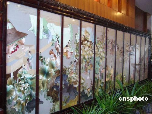 11月2日,巨型蘇繡《群仙祝壽圖》。近日,一幅長12米、寬5米的巨型蘇繡《群仙祝壽圖》亮相江蘇蘇州一家商場,該作品由12位繡娘花費近半年時間繡制完成,標價98萬元人民幣。中新社發 李俊鋒 攝