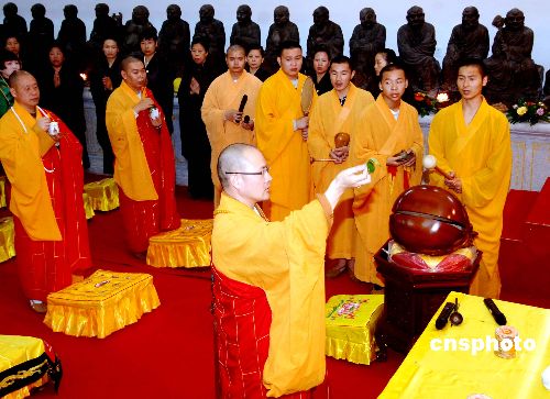 十一月十日,福州開元寺隆重舉行外山門落成、二十八座佛塔安座及羅漢堂壹佰零捌尊羅漢圣像開光典禮。福建省佛教協會副會長兼秘書長、福州開元寺方丈本性法師率眾僧及信眾近千人參加該典禮。福州開元寺是福州現存最古老的寺院,始建于梁太清三年,距今近一千五百年歷史。中新社發 劉可耕 攝