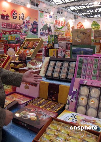正在上海舉辦的中國大陸年度最大規(guī)模食品博覽會(FHC)上,臺灣食品行業(yè)的四十八家新老企業(yè)“組團(tuán)”亮相,成為一道美麗風(fēng)景。圖為由大陸臺商牽線,來自臺灣北中南各地的百余種美食結(jié)成“聯(lián)盟”,以“一站式”門店的模式,整體落戶上海。中新社發(fā) 許曉青 攝