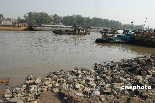 11月20日,運河揚州六圩段航道。進入11月以來,京杭運河江蘇揚州段水位持續下降,目前水位僅為1.05米,是10多年來枯水期間出現的最低水位。從11月20日起,揚州市地方海事部門已在京杭運河揚州段全線啟動《保暢通應急聯動方案》,目前整個航段水上航行未受到影響。中新社發 張丙濤 攝