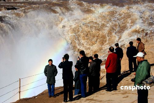 圖:初冬的黃河壺口瀑布吸引眾多游客