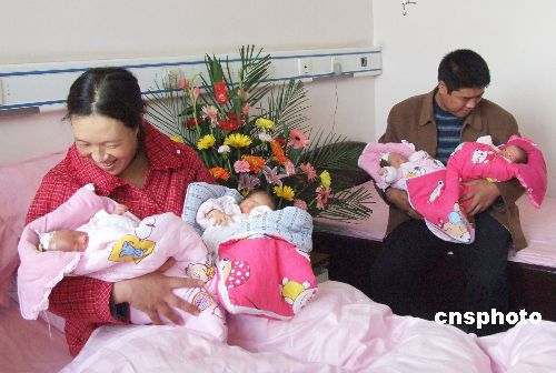 圖:山西臨汾農(nóng)家喜接龍鳳四胞胎