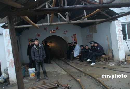 12月11日晚6時20分左右,安徽蕪湖市繁昌縣陽沖鐵礦發生井下坍塌事故,正在井下作業的7名礦工被困井下100百米左右,生死不明。事故發生后,蕪湖市政府立即啟動應急救援預案,成立了事故搶險救援指揮部,全力組織救援工作。由于被困礦工離井口太深,給救援帶來一定的難度,當晚,省安監部門調集銅陵、淮南兩地的礦山救護大隊救援人員、專家趕到事故現場,組織救援。救援人員在開挖封堵巷道泥土的同時,向井下送風。截至發稿時止,被困礦工仍未救出。中新社發 芮軍 攝