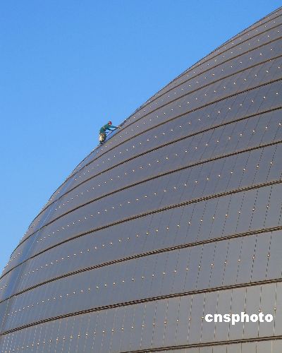 12月14日,北京國家大劇院內外呈現一片繁忙景象,有關工作人員開始全面對大劇院進行清洗、保潔,以嶄新的面貌迎接12月22日國家大劇院首個演出季的開幕盛典。中新社發 玉龍 攝